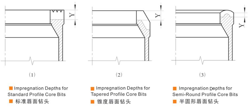 根据不同的岩层及钻探情况,我们生产各种不同唇面形状的人造金刚石孕镶钻头。