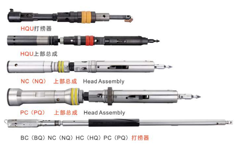 绳索取芯钻具是一种不提钻而从钻扞内捞取岩芯的钻井工具。整套钻具包括:钻具总成、打捞器、 钻杆、绞车、提引器、夹持器及自由绀等部件。